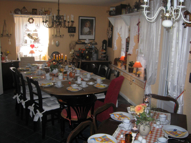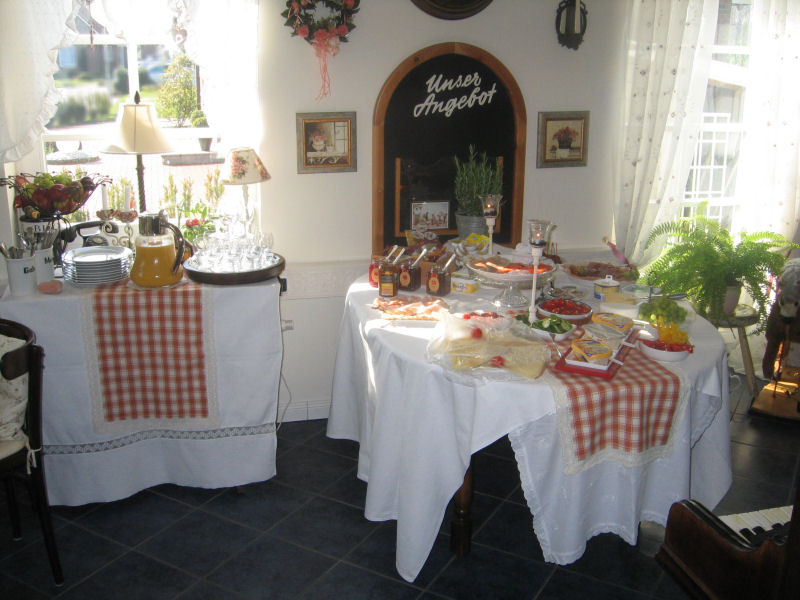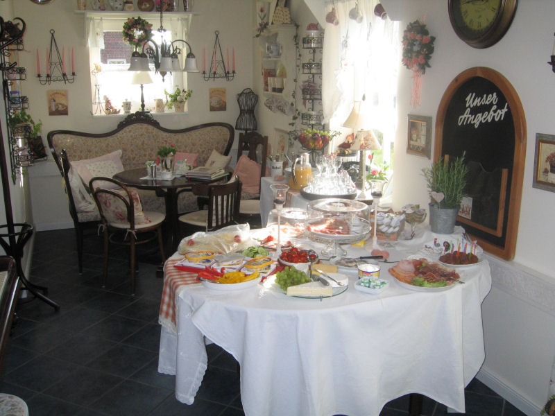 Sie möchten einmal in gemütlicher Runde im Nostalgie Café Frühstücken? Sprechen Sie uns an. Auf Bestellung bieten Ihnen bereits ab 8 Personen von Dienstag bis Samstag, in der Zeit von 9:30 bis 13:00 Uhr, unser individuelles Frühstück an. Wir planen mit Ihnen Ihr Frühstück und organisieren Ihr Frühstück ganz nach Ihren Wünschen. An diesem Tag, Vormittag, öffnen wir unser Café extra für Sie und Sie genießen ungestört die gemütliche Atmosphäre im Nostalgie-Café. Stöbern gerne auch im Stöberstübchen, halten Sie Ausschau nach kleinen Geschenken, Wohnaccessoires und "Dingen die die Welt nicht braucht" aber das Leben verschönern. Unser Frühstücksangebot: z. B. unser reichhaltiges Nostalgie-Café-Frühstück: Inklusive Kaffee, Tee, ein Glas Orangensaft, ein Frühstücksei, verschiedene Sorten Brot und Brötchen, Marmeladen, Nutella, Honig, Aufschnitt, Schinken, Käseplatte mit Trauben, Salate wie Fleisch- oder Geflügelsalat, Dips mit Paprikastreifen und Karottenstreifen 12,90 €, pro Person plus ein Glas Prosecco für 15,00 € Individuelle Wünsche, wie z. B. Lachs mit Meerrettich, Krabbensalat, Obstsalat oder Rührei, Kräuterquark, Tomate mit Mozzarella, Rote Grütze, Melonenschiffchen usw. sind gegen Aufpreis möglich.